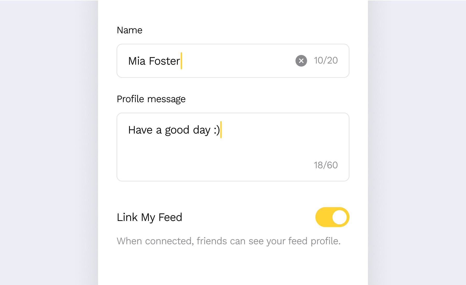 In ‘Edit Profile,’ you can update your profile picture and message. You can also use the ‘Link My Feed’ option to choose whether to share your Feed with friends.