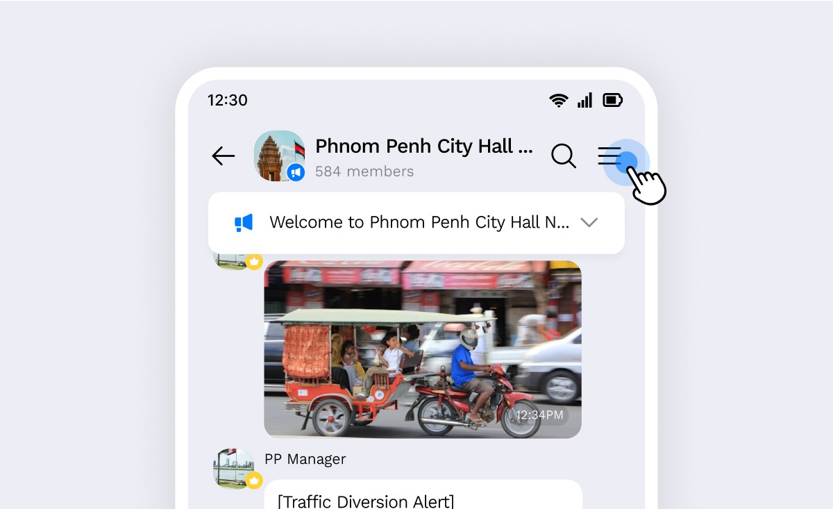 In any 1:1, group, or open chat, tap the menu icon (☰) in the top right corner.